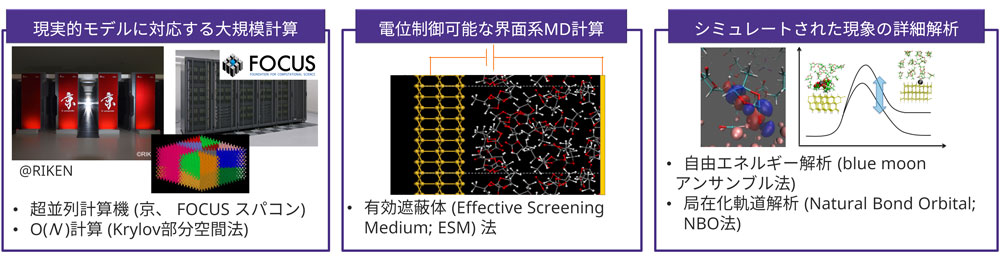 Based on first-principles computational simulations, the structure and reaction mechanisms of material bulk and interfaces are analyzed in detail. It contributes to the interpretation of experimental analysis with high accuracy and to the acquisition of material design guidelines.