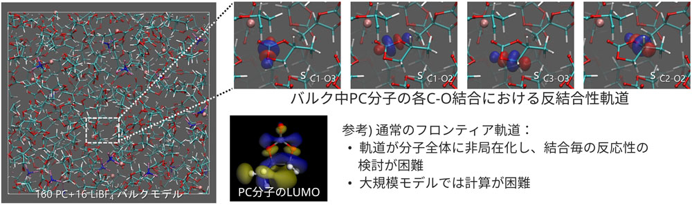 The products identified in the simulation of the reductive decomposition reaction of PC molecules on Li metal surfaces are consistent with experiments.