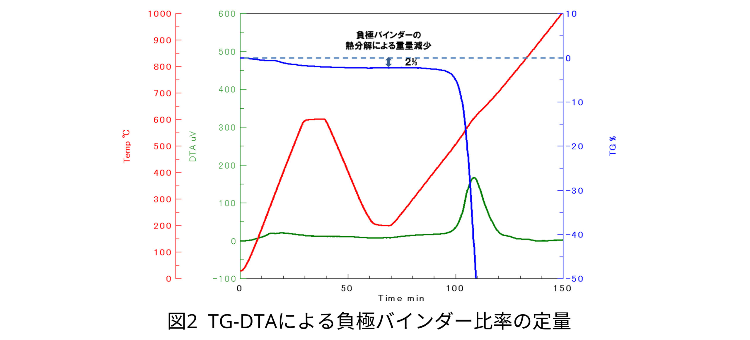 TG-DTAを用いて電極バインダー量の分析ができます。