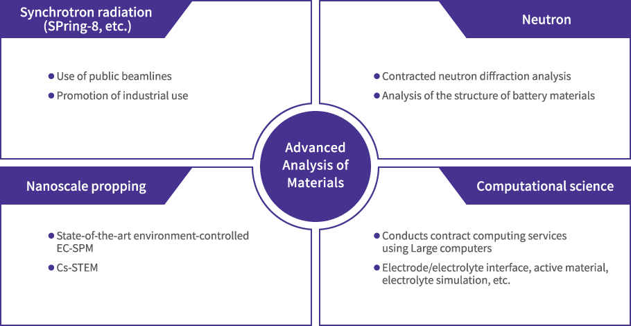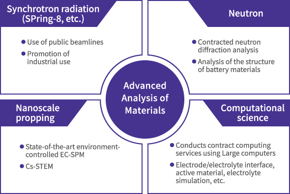 Advanced analysis technologies, such as more detailed microscopic information and molecular structure estimation, are also available not only for research and development, but also for development and market quality response through the comprehensive use of synchrotron radiation and large-scale first-principles calculations.