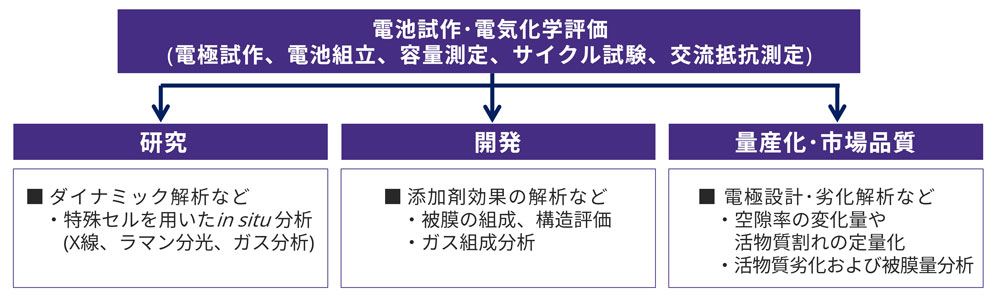 LIBの電池試作・評価、電気化学評価サービス  材料およびセルの分析・解析までの総合受託分析