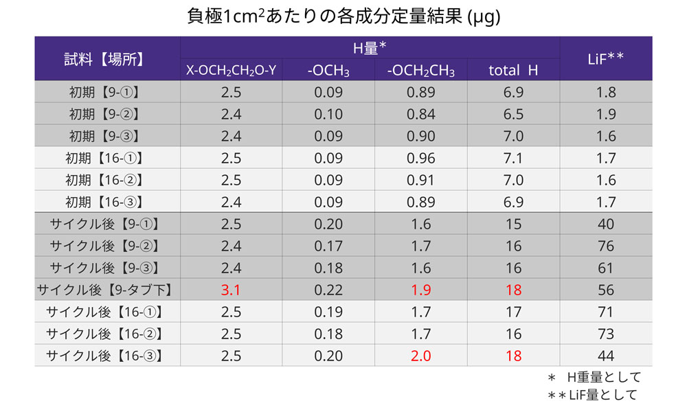 局所的に界面抵抗の増加している箇所が存在し、有機被膜 (EC分解) の割合が多いことや金属溶出が顕著であることが確認された。