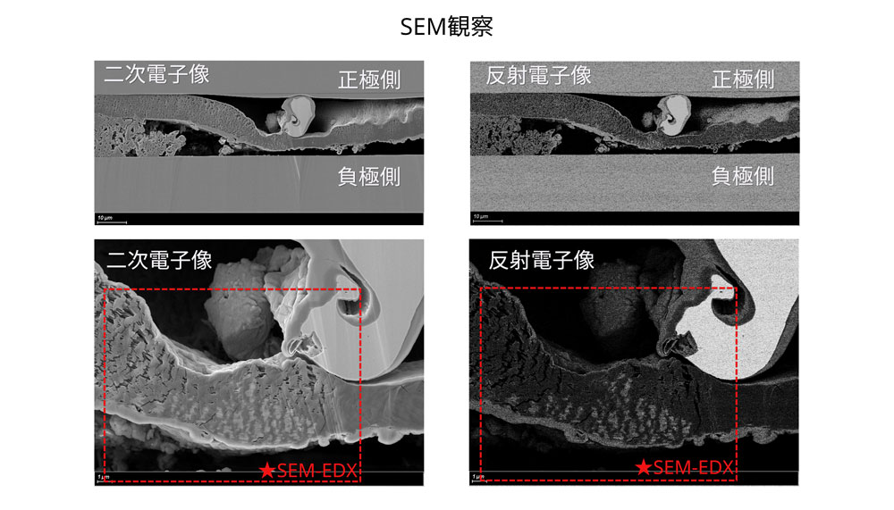 その検証モデルとして、SUS粒をセル内に挿入して充放電試験を行い、解体分析によって起きた現象を調査しました。