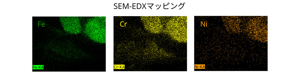 右模式図に示すように、充電時に正極側のSUS粒が溶出し、溶出したFe, Crが負極側で再析出していると考えられます。短絡の原因は、負極側から成長した析出物が、セパレータを貫通したことによると推測されます。
