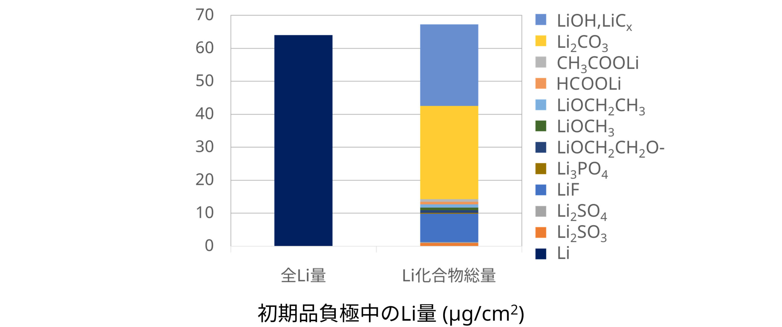 負極SEI中に固定化されたLiの状態および量を分析することで、容量低下因子を抽出することが可能です。