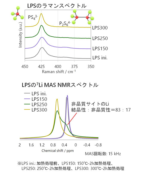 硫化物系に代表されるLi2S-P2S5系ガラスセラミック固体電解質は、加熱結晶化により超イオン伝導性結晶が析出する系として知られていますが、低露点下にて結晶析出過程を評価する方法として、大気非暴露高温XRD測定があります。LPS(75Li2S・25P2S5)の高温XRD測定により、その結晶化過程を観察しました。当社では高出力X線 + 平行ビーム光学系を採用することで低いバックグラウンドが得られ、非晶質の弱い散乱パターンも明瞭に観察することができます。さらにリートベルト解析により構造パラメータなどを算出することで定量的な解釈が可能となります。