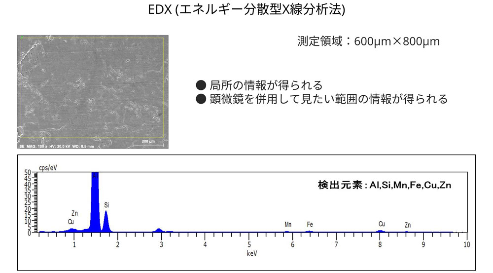 品質検査はもちろん、不具合が生じた際の材料・原因調査は、的確な分析方法の選択と、豊富な経験や知識が必要です。分析対象物に最適な元素分析手法を提案します。