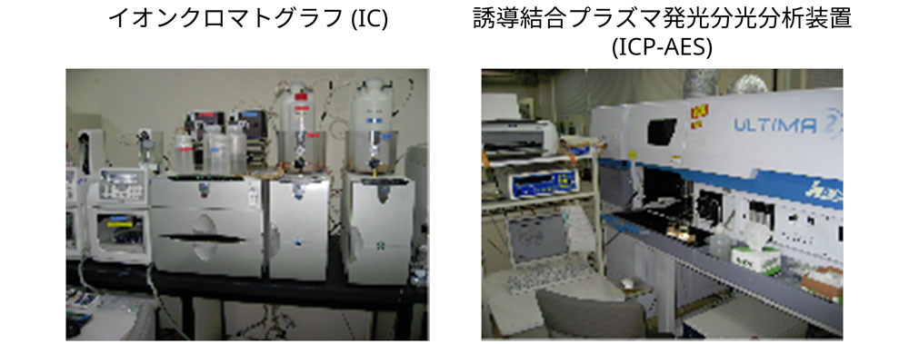 一般的に、「酸」はイオンクロマトグラフ分析法、「水分」はカールフィッシャー分析法、「金属」は誘導結合プラズマ発光分光分析法 (ICP-OES) により定量分析を行います。