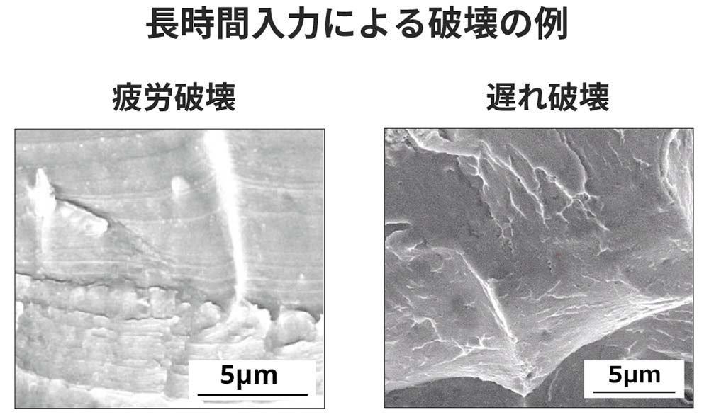 金属部材の破損原因の特定には、まず破面解析 (フラクトグラフィー) を行います。これにより、亀裂の発生位置を特定し、どのような破壊様式であったかを判定します。さらに調査・分析を行うことで破損のメカニズムを、再現試験を組み合わせることで恒久的な対策へとつなげます。