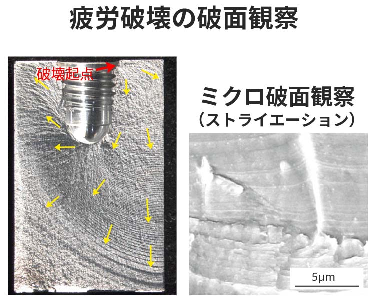 破損した金属部材の破断面から、亀裂の発生から破損に至るまでの様子を読み取ります。