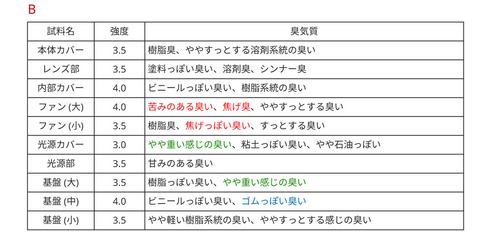 アウトガスや臭気の原因部品を特定して、迅速な対応につなげます