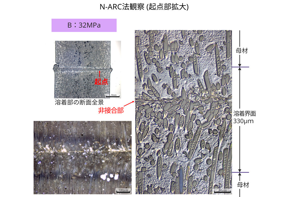 引張試験後の破面観察と溶着部の断面観察 (N-ARC法) 結果