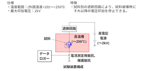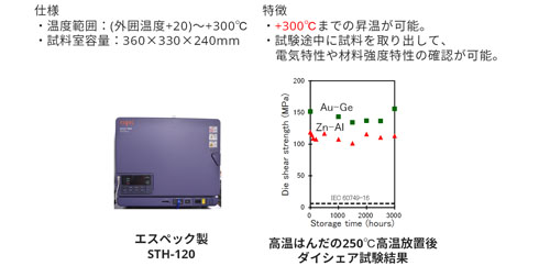 次世代半導体を用いたパワーデバイスや周辺部材の耐熱課題を解決するためには、より高温での評価や加温・加湿条件での信頼性試験が必要です。日産アークでは200℃以上での高温試験や加湿、さらには電圧を印加しながら試験を行うことも可能です。