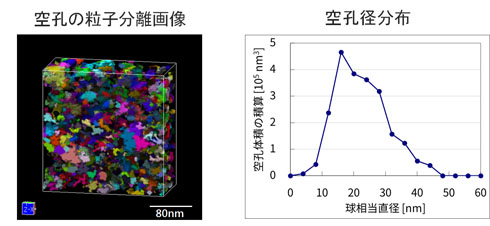 空孔を球相当の粒子と仮定して、空孔径分布を評価できます。