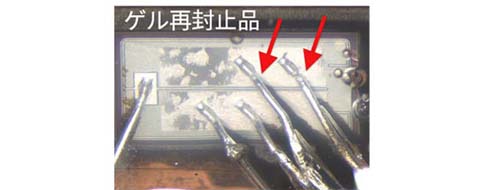 市販SiC-MOSFET (TO-247パッケージ / 耐圧1.2kV / 定格電流60A / ドレイン・ソース・オン抵抗40mΩ) のチップ周辺のエポキシ樹脂封止材 (EMC) を方形すり鉢状に開封後、シリコーンゲルで再度封止をして封止法の異なる3種類 (未開封品、開封品、ゲル再封止品) の試料を作製、評価しました。