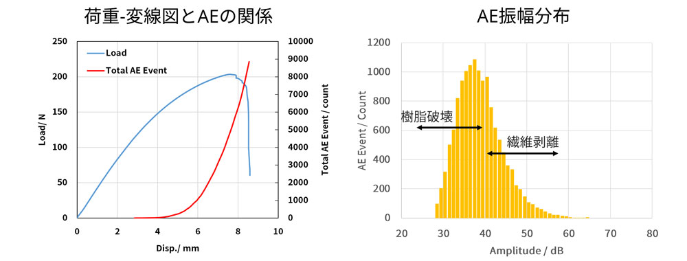 ガラスファイバー (GF) やカーボンファイバー (CF) を含むFRPやそのウエルド界面、異種材接合部などの接合界面が破壊するプロセスを可視化する手法として、AE法が挙げられます。
