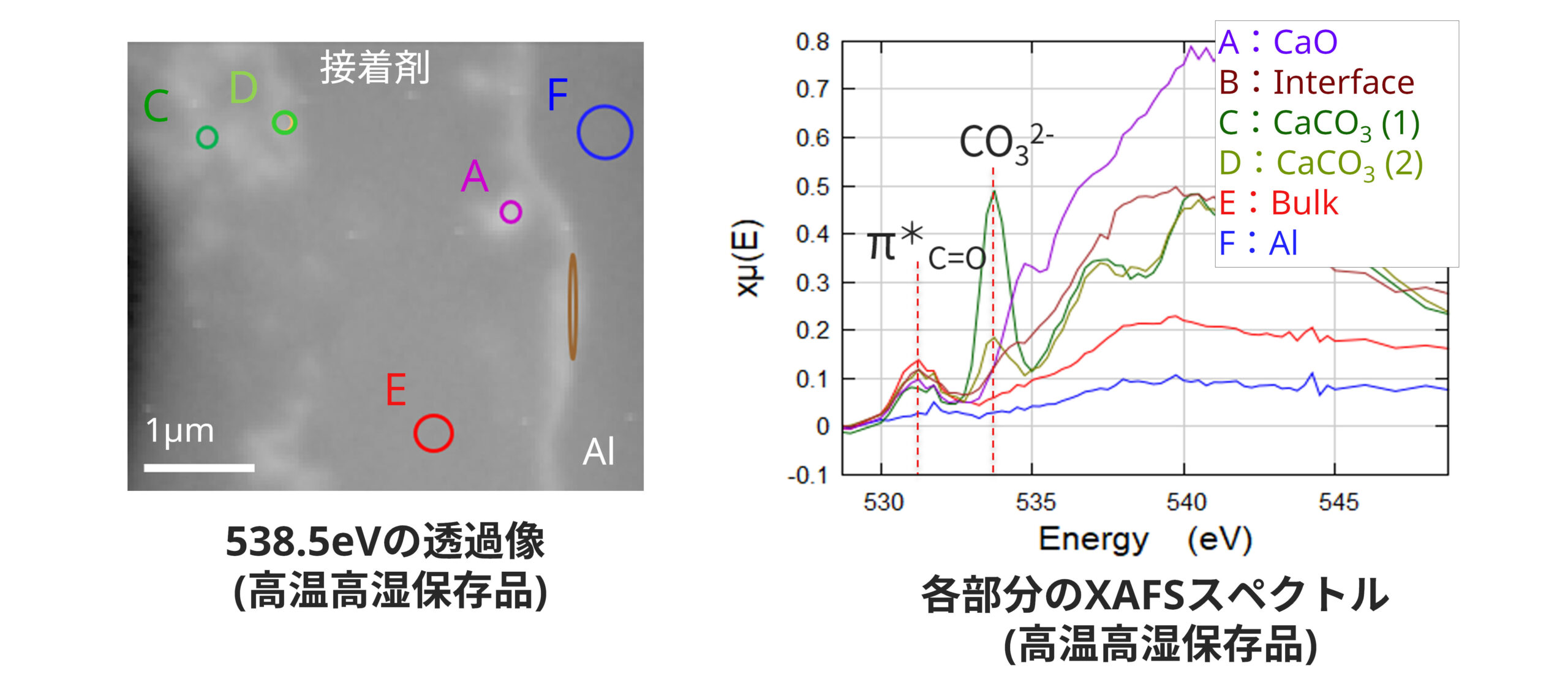 接着界面において機械物性、化学状態分析、形態観察を補完的に実施し、接着界面の強度発現メカニズムを理解することは、接着技術の開発には重要です。走査型透過X線顕微鏡 (STXM) は、X線吸収 (XFAS) を原理としており、接着界面の化学状態をナノレベルで評価することが可能です。