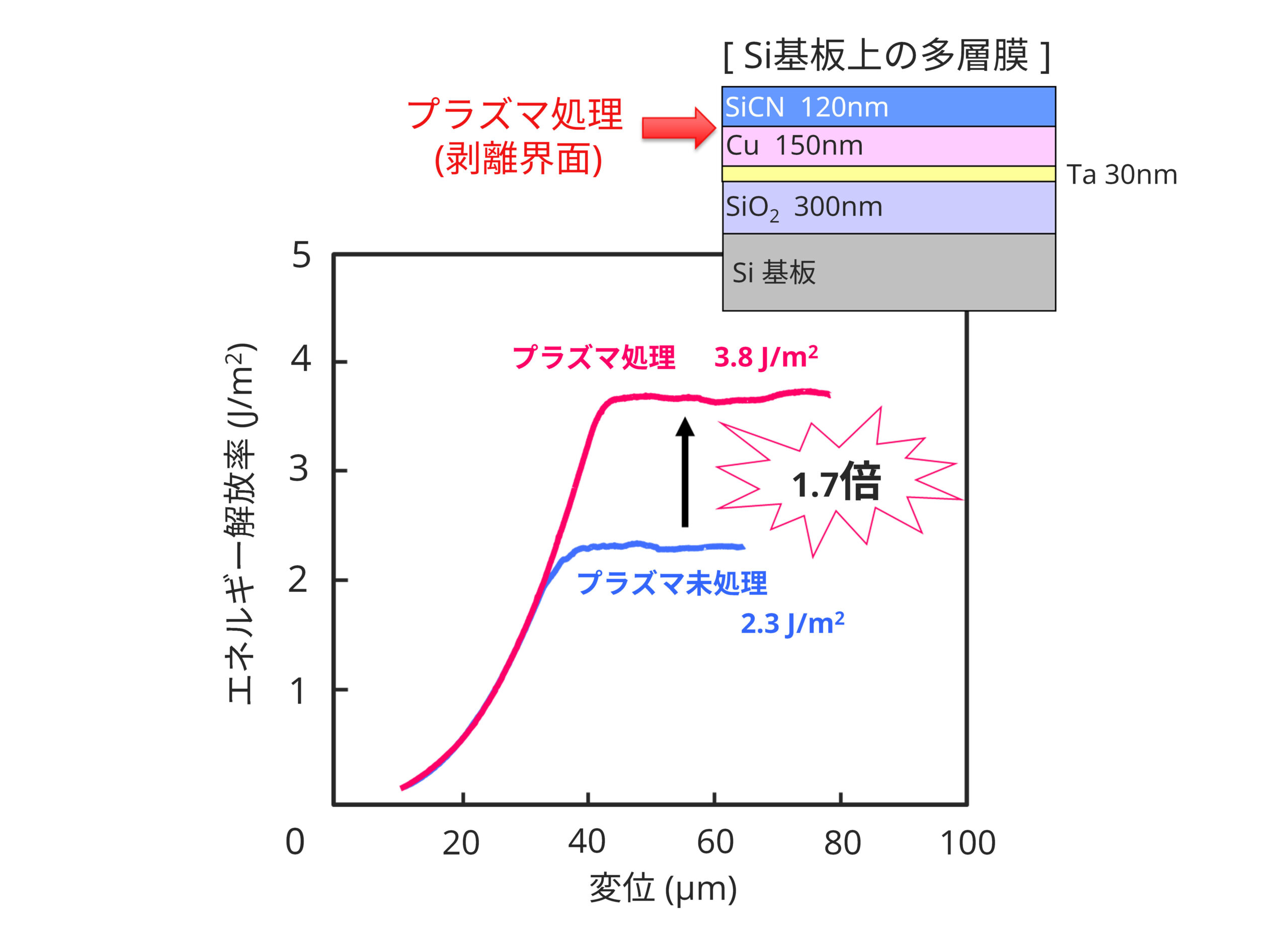 SiCN/Cu界面のエネルギー解放率を捉えることにより、プラズマ処理の効果を定量的に評価することができます。