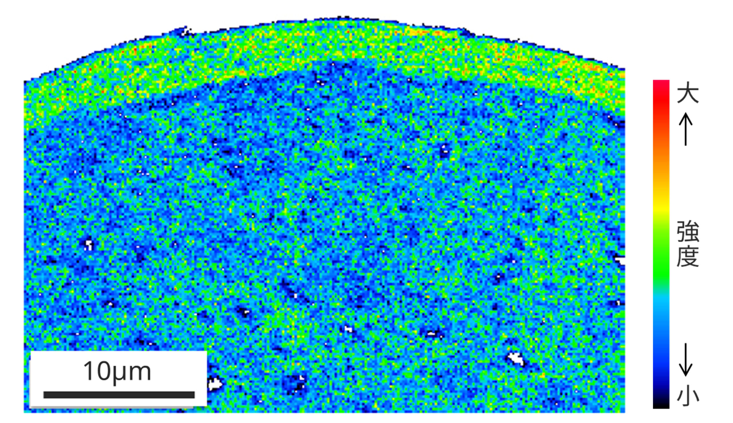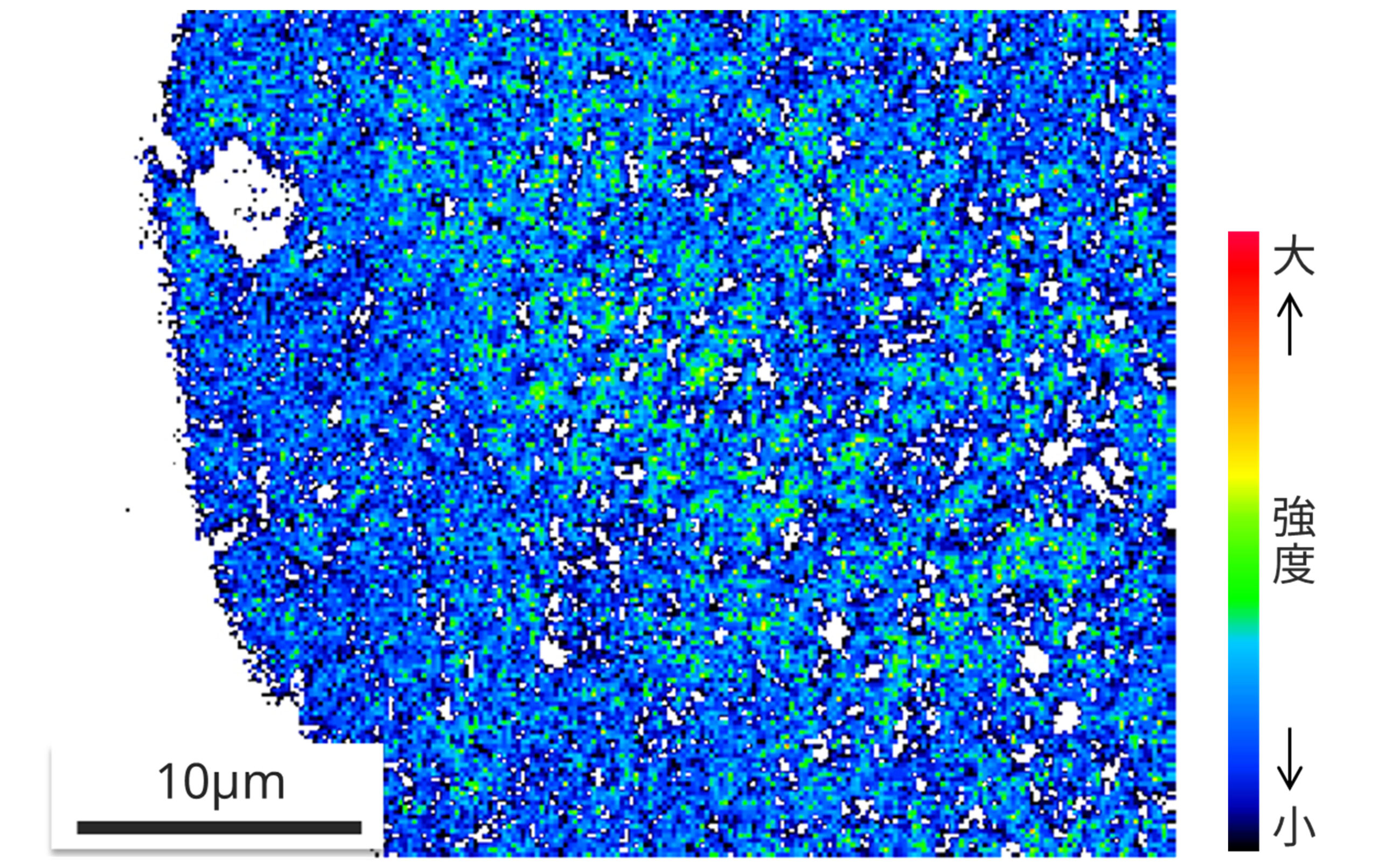 健康な毛髪の内部には、ジスルフィド結合 (S-S) と呼ばれる、毛髪の主成分であるケラチン同士を結び付ける強い結合が存在します。このS-S結合が弱まると、髪がパサついたり、切れ毛や枝毛の原因となるため、S (硫黄) の分布を捉えることは重要です。クライオEPMAによって毛髪断面を冷却しながら分析することで、常温では困難であったS分布の可視化に成功しました。健康な髪ではキューティクルにSが最も多く分布し、傷んだ髪ではコルテックスの外側にかけて分布が弱まり、外側ほどダメージが大きいことが明らかになりました。