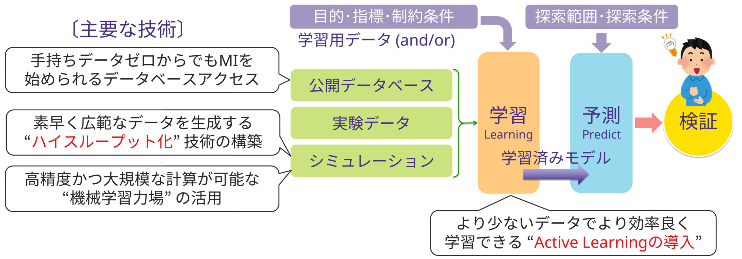また、より少ないデータから効率よくMIをスタートできるようActive Learningなどの機械学習の導入も重要です。