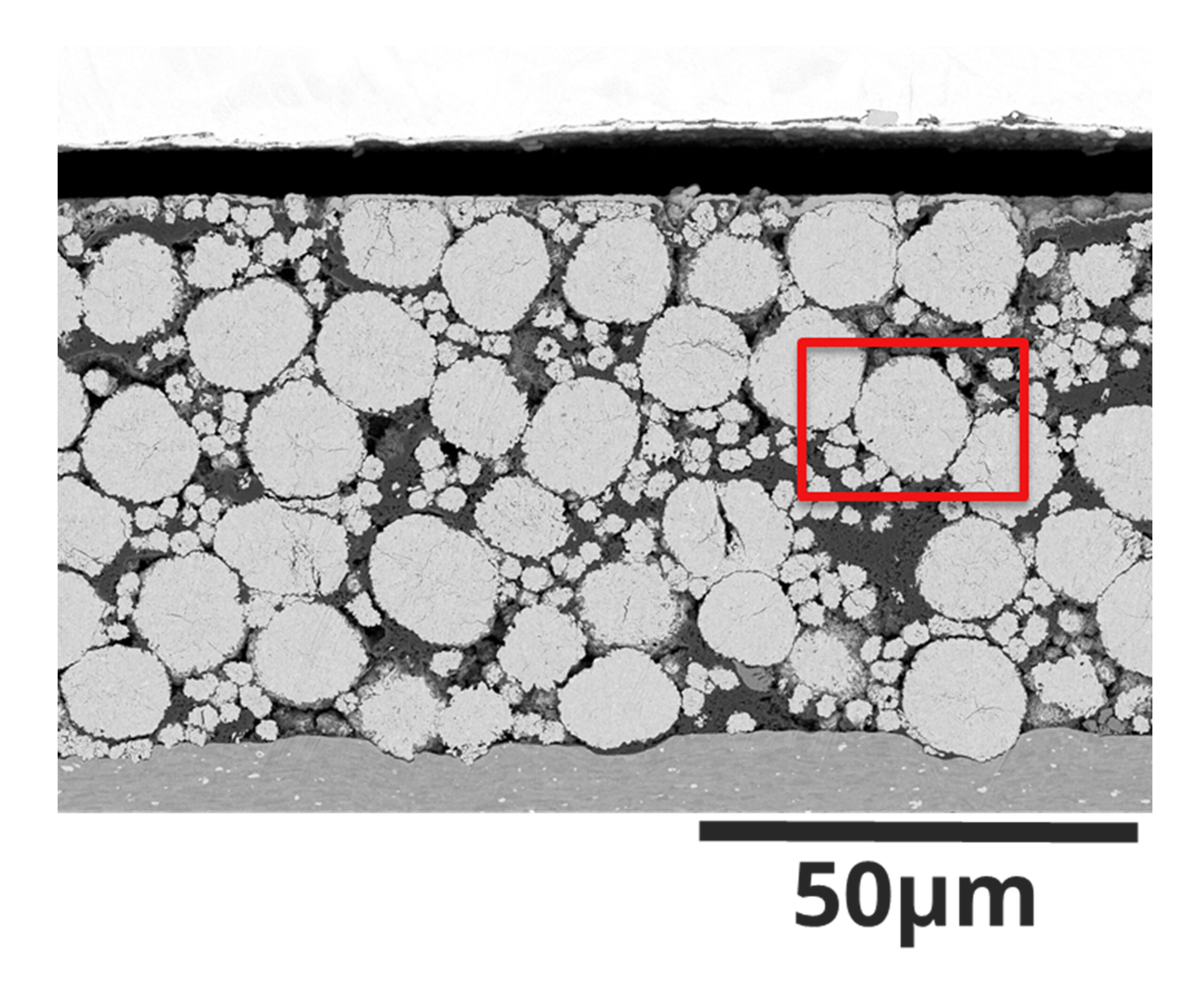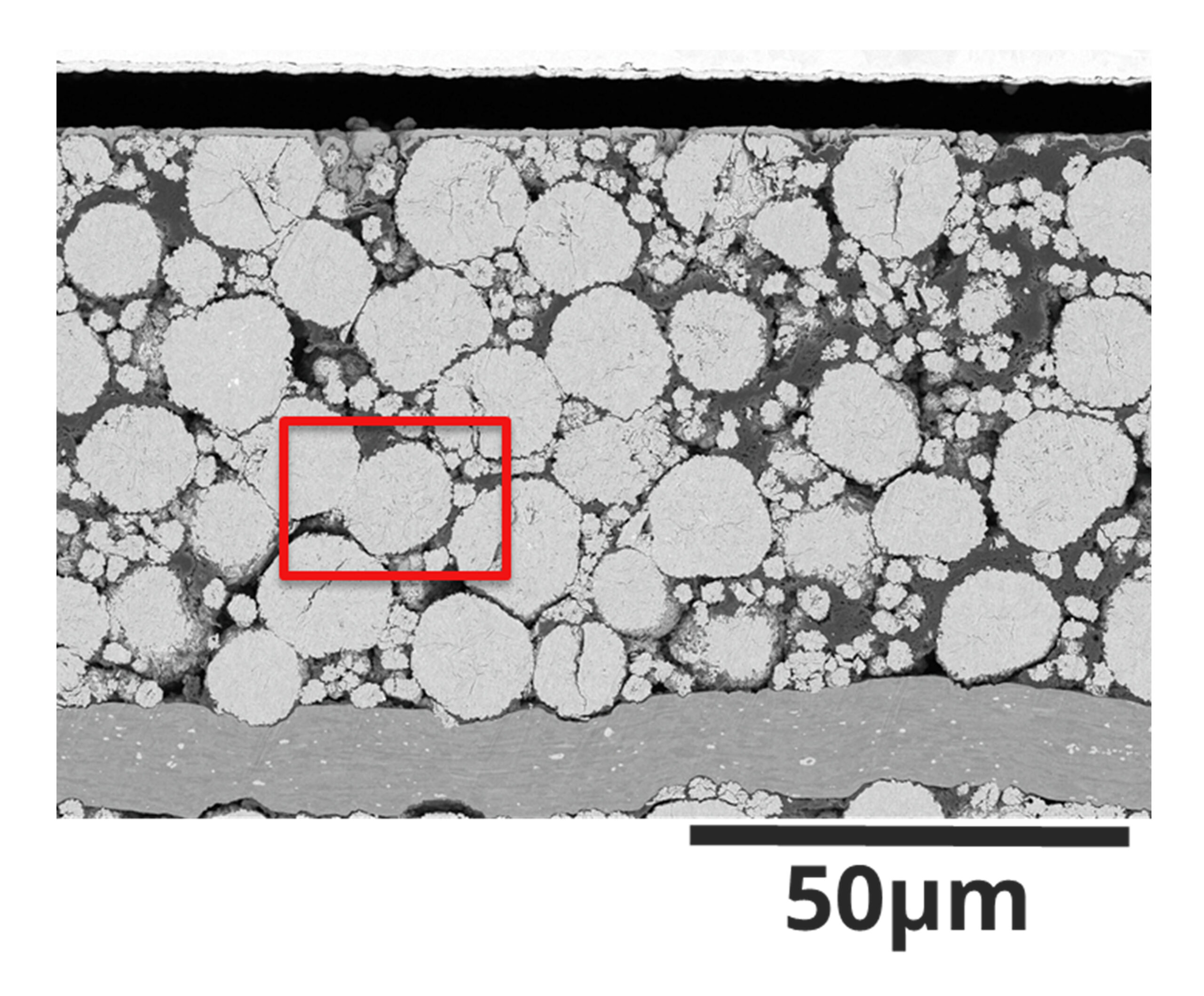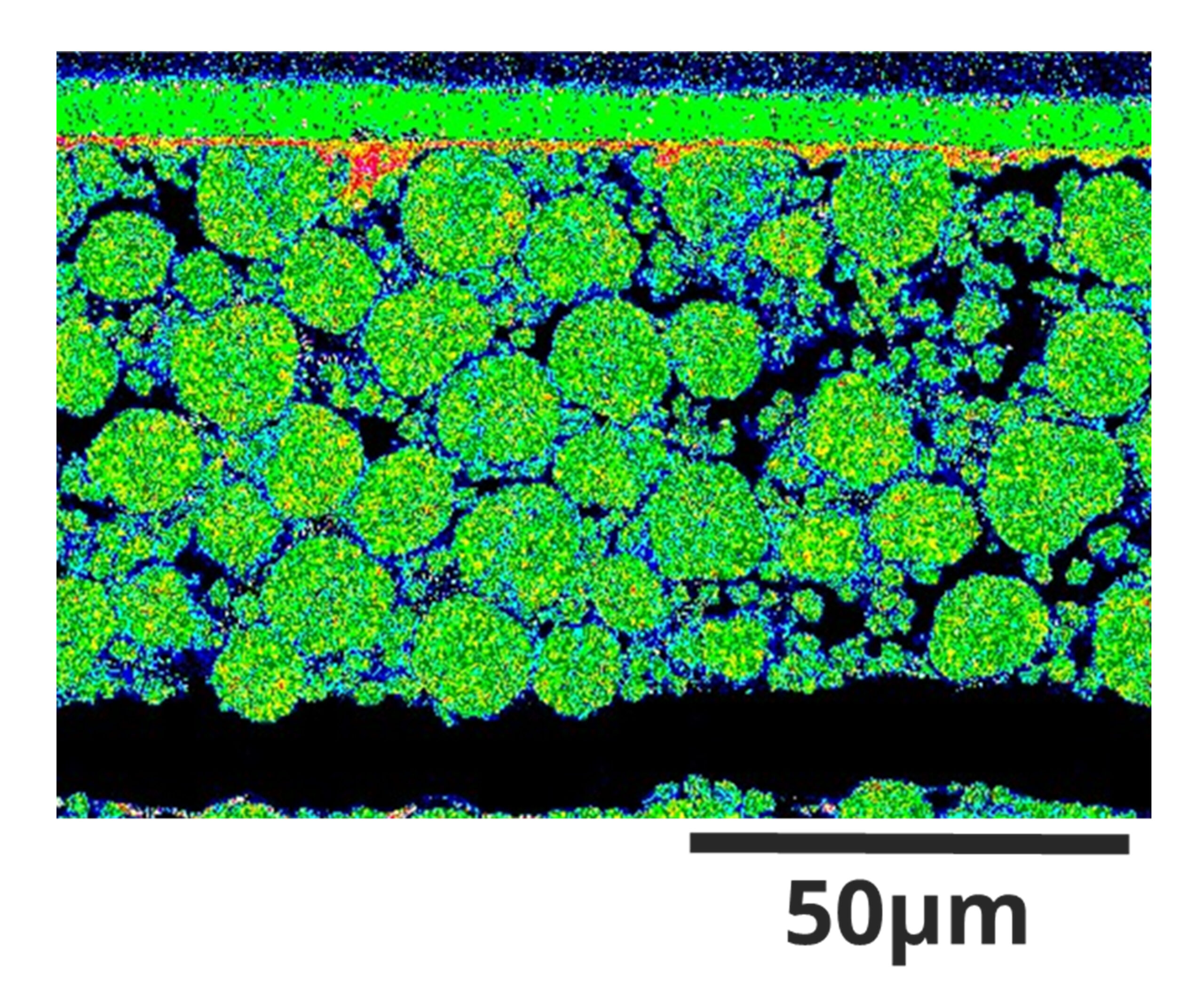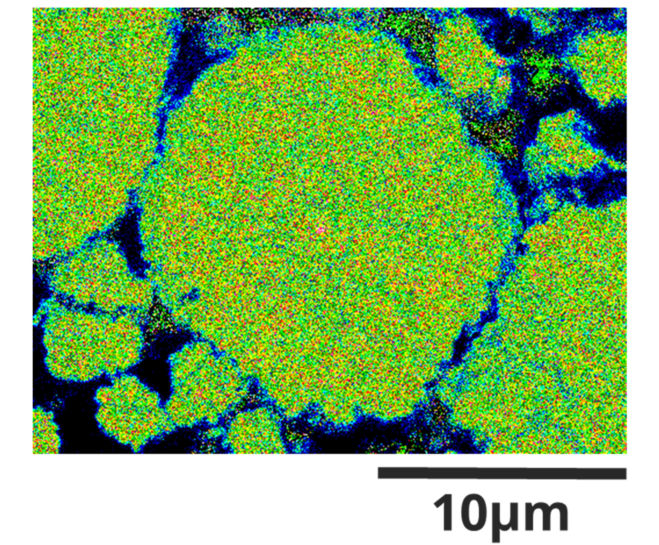 ナトリウムイオン電池 (NIB) の正極は活物質や導電助剤、バインダーなどから構成されます。これらの形状や分布の変化によって電子やイオンの導電パスに変化が生じ、電池性能に影響します。SEM-EDXによる断面観察を行うことで、それらの変化を視覚的に捉え、評価することができます。