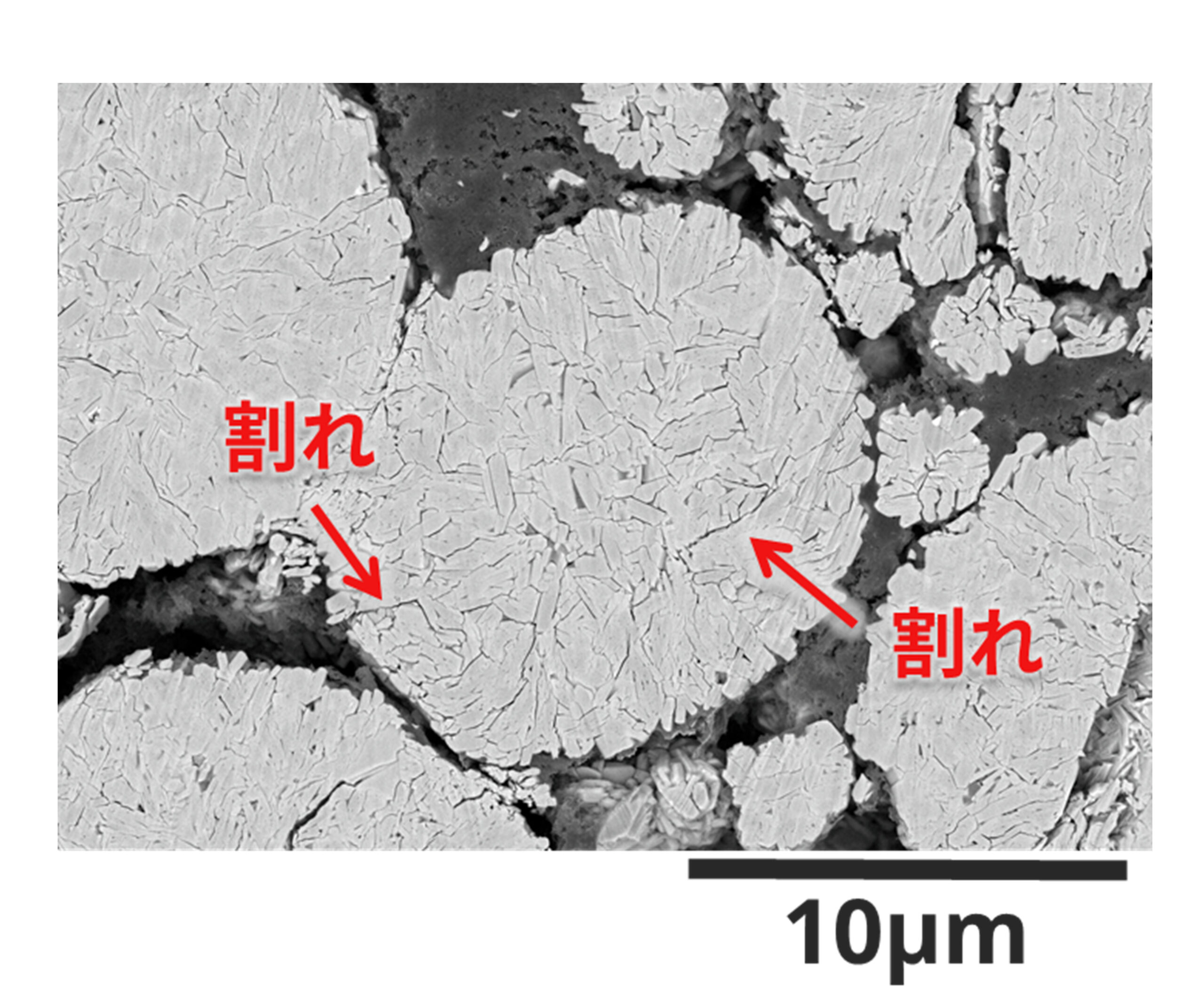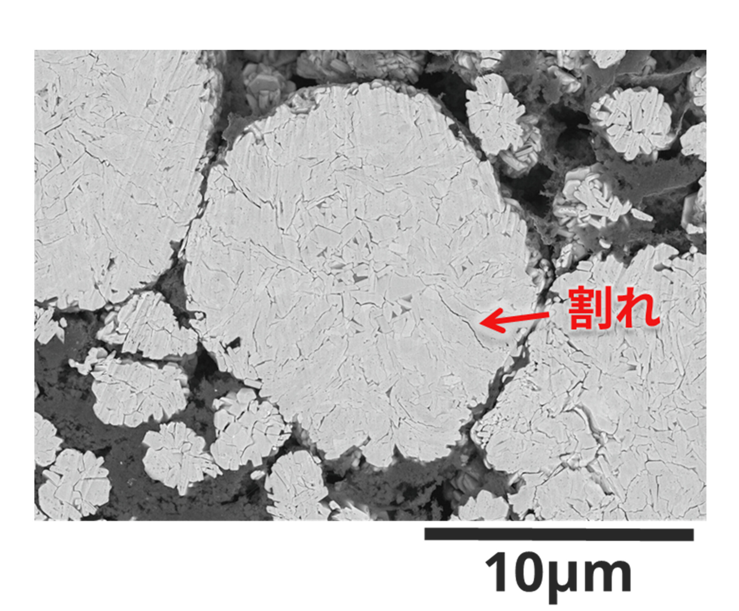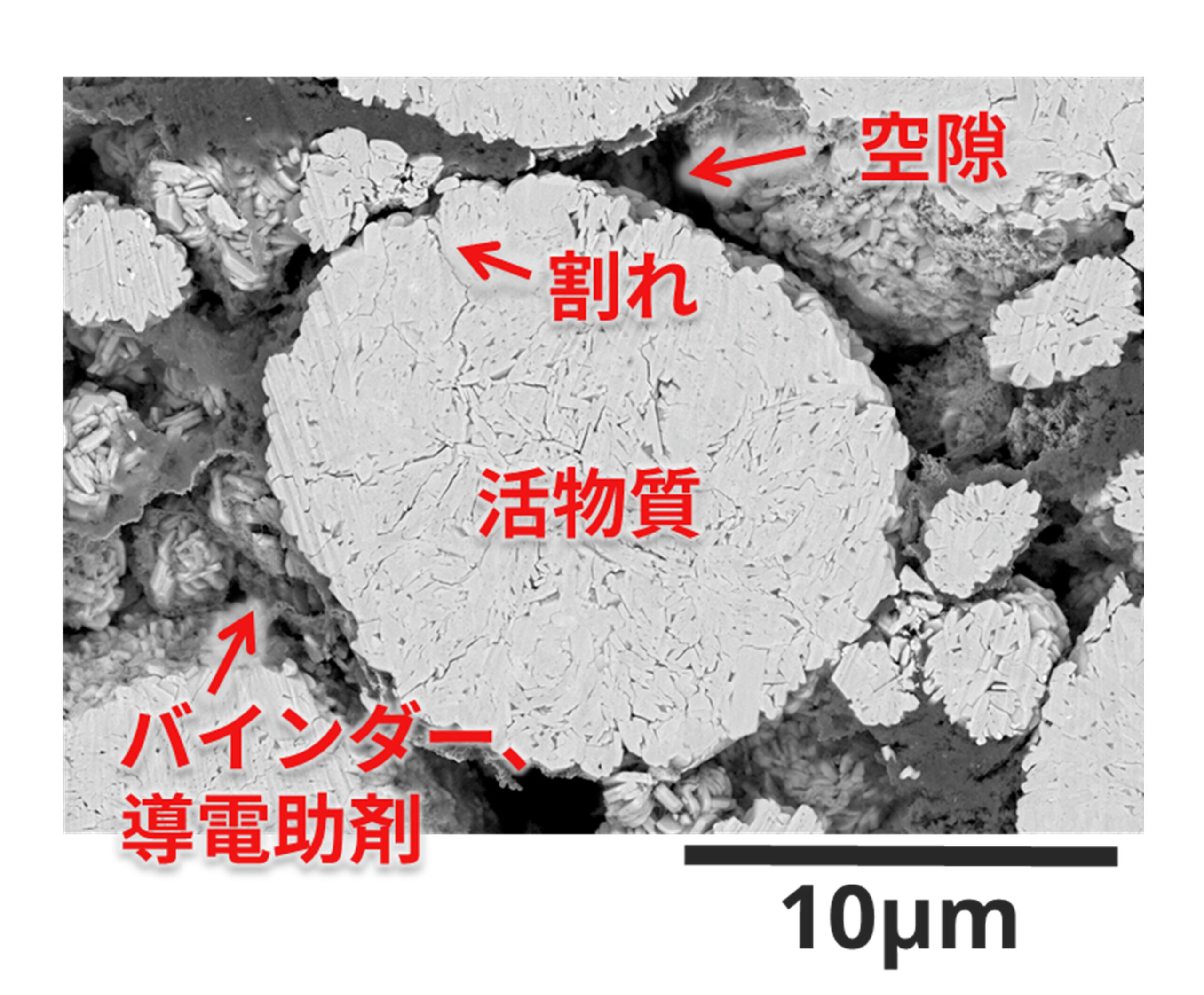 劣化にともなう活物質の割れおよびNa分布の変化を確認できます