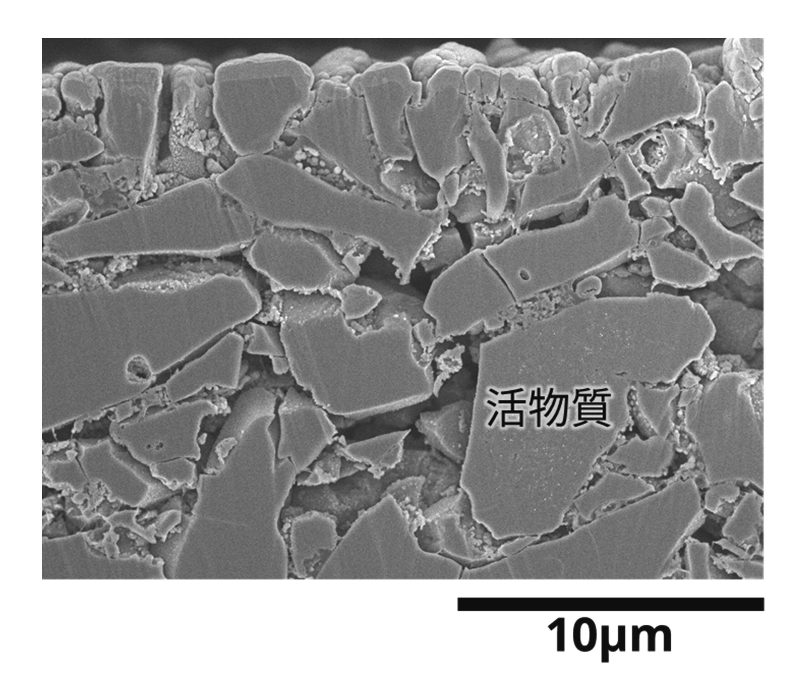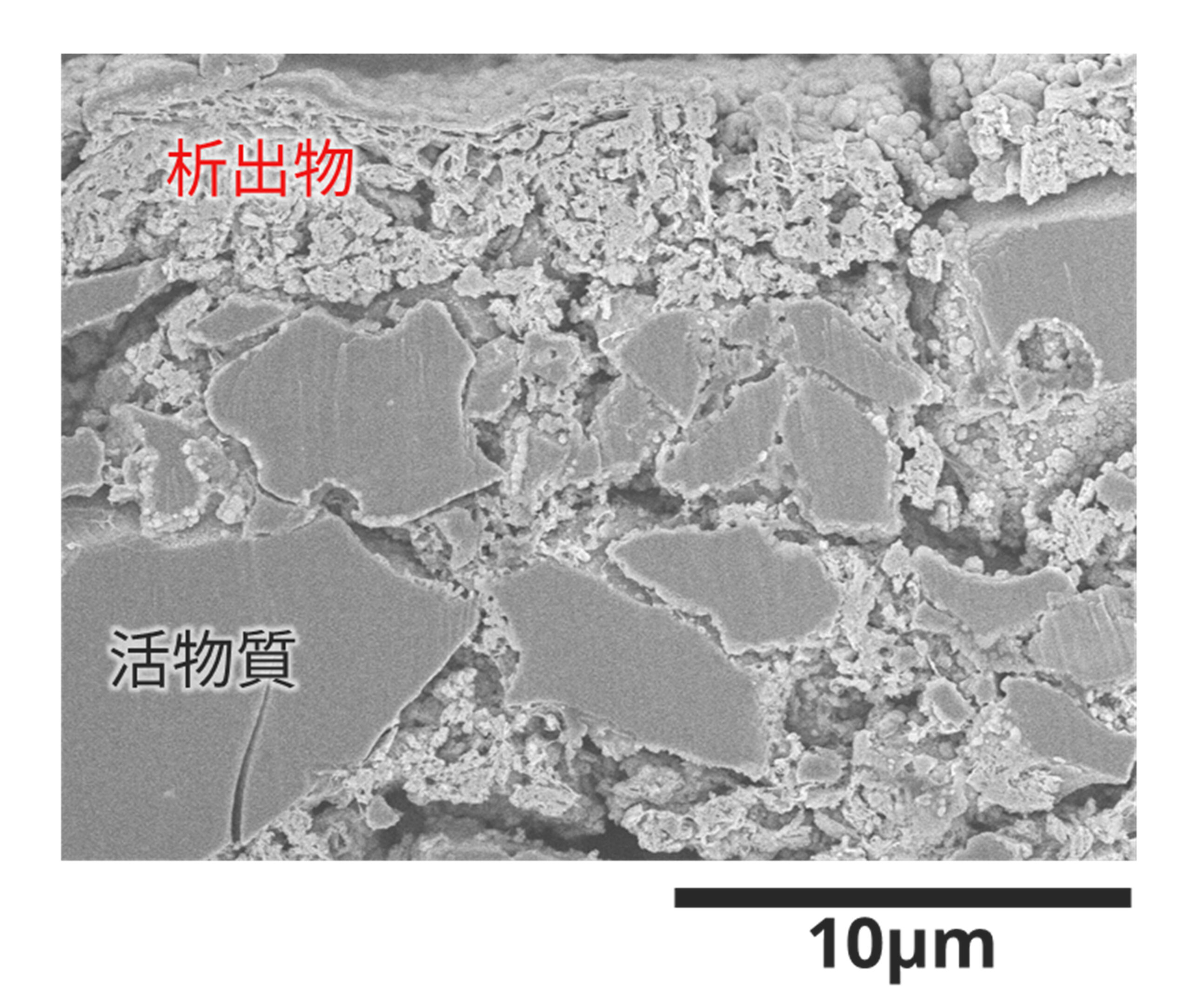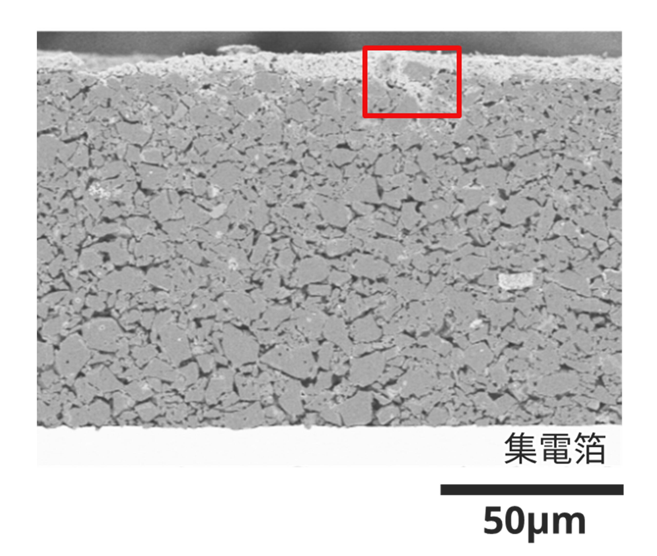 初期品と比較し、100サイクル品・400サイクル品では、電極表面および活物質間に細かい枝状・粒状の析出物と、Naの分布が確認されました。サイクルに伴うNa金属の析出と、析出Na金属上でのSEI成長の促進が推測され、これらは充放電容量低下の一因と考えられます。