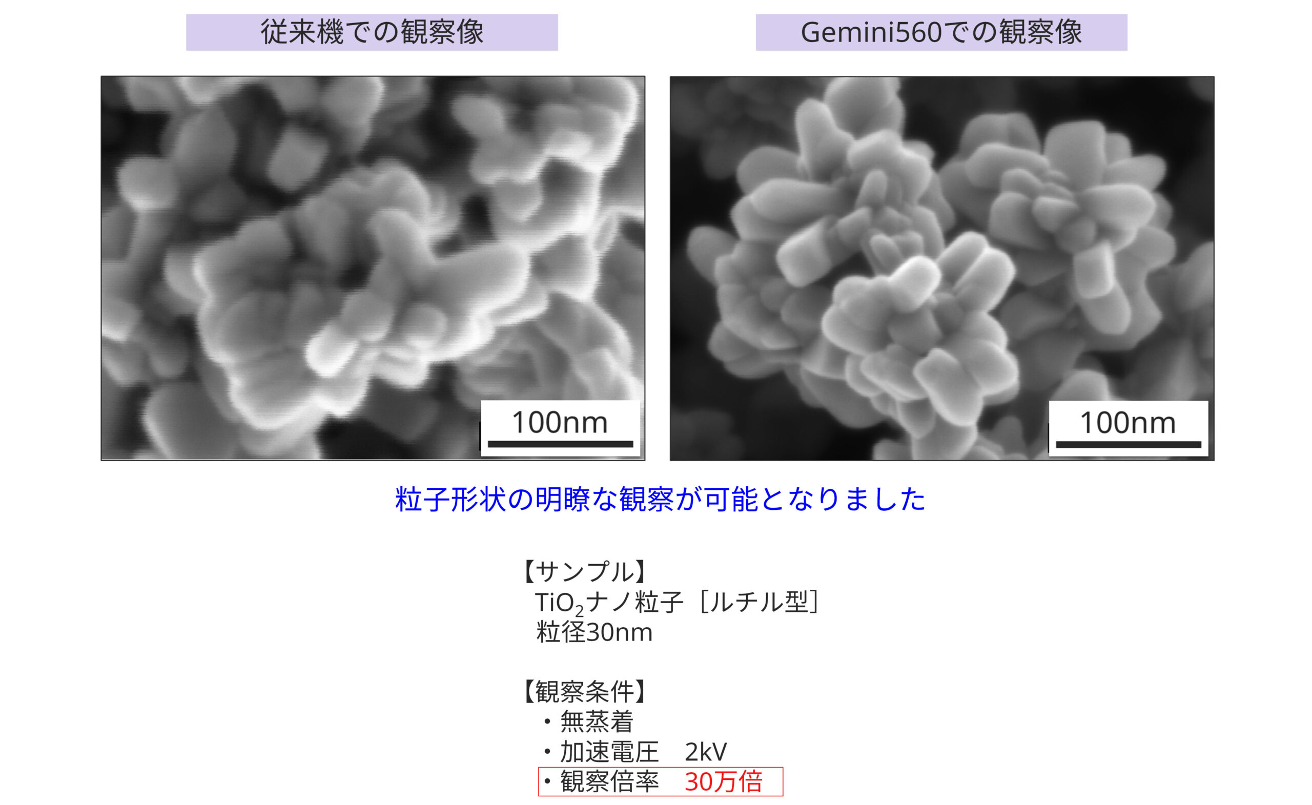 カールツァイス製GeminiSEM 560は、サンプルバイアスを必要としない極低加速電圧観察で、高感度な二次電子、反射電子の高分解能イメージングにより、これまでには得られなかった情報を試料から引き出すことが可能になりました。