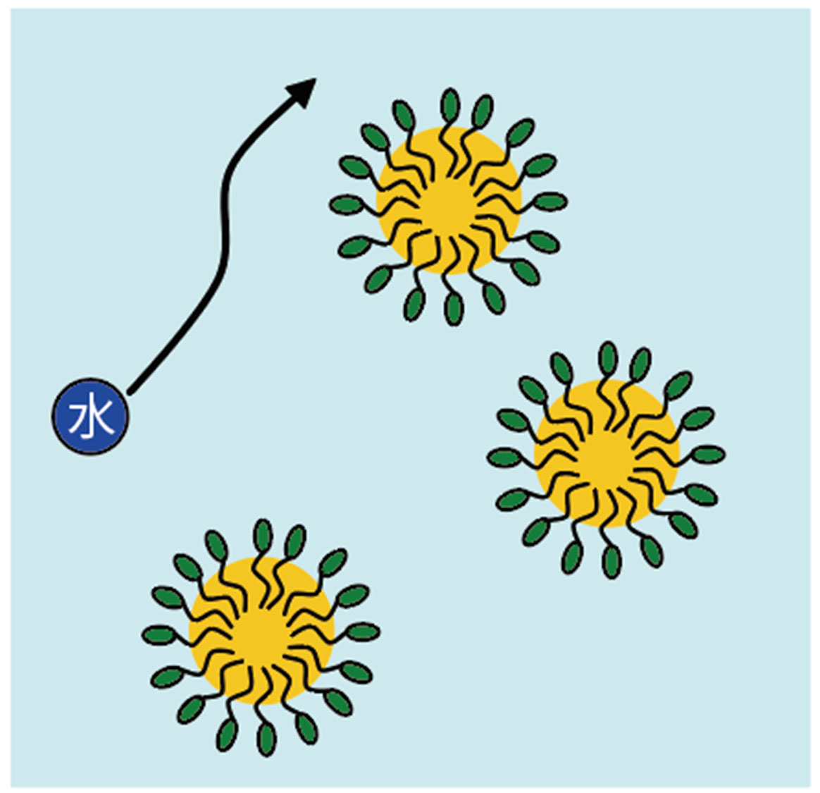 水添加10質量百分率 (mass%) において、オイルの拡散係数が大きく減少していることから、オイルは連続相ではなくなっており、高い洗浄力を示す逆ミセル構造から状態が変化していると考えられます。