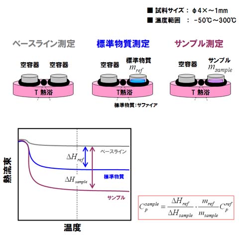 高分子フィルム、金属箔のようなミクロン厚さの材料の比熱を測定することができます。