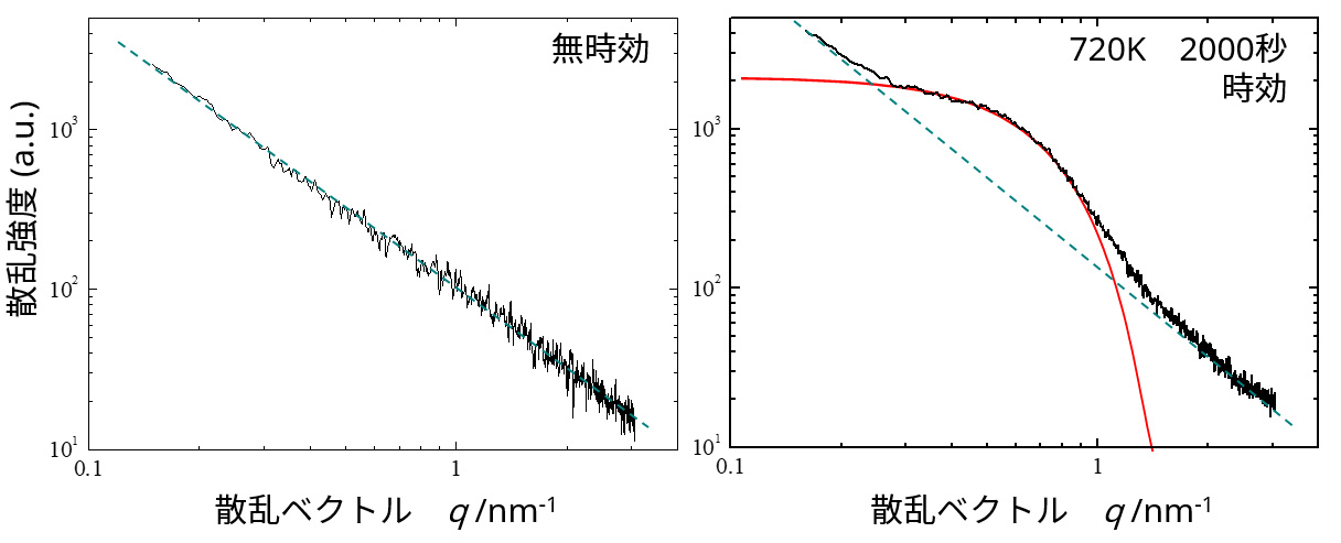 マクロ的な評価が難しい金属材料中の析出物に対してX線小角散乱法を用いることで、合金組成・時効時間・材料強度などの一連の条件変化に対応した粒子径・サイズ分布や粒子形状などの析出物情報を得ることができます。