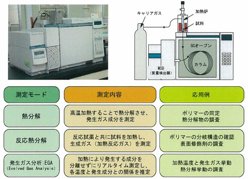 熱分解や反応熱分解、昇温加熱等種々の熱処理法により発生したガスを分析することで、試料の熱挙動や構造についても調べることができます。