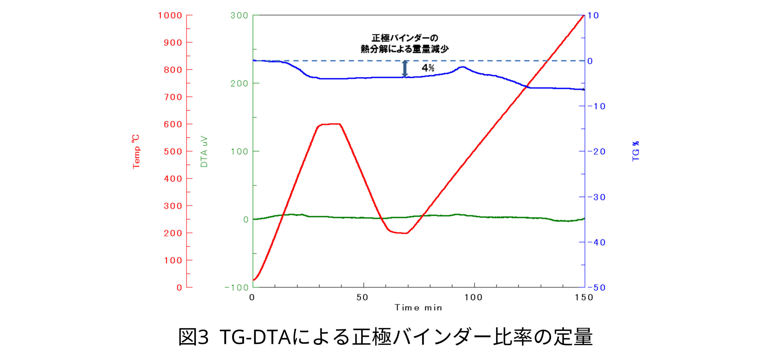TG-DTAを用いて電極バインダー量の分析ができます。
