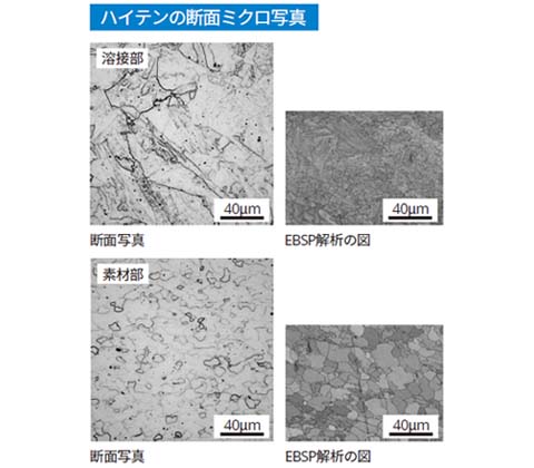 またEBSP解析 (※1) の図は、溶接部がマルテンサイト (※2) 、素材部がフェライト (※3) であることを示しています。